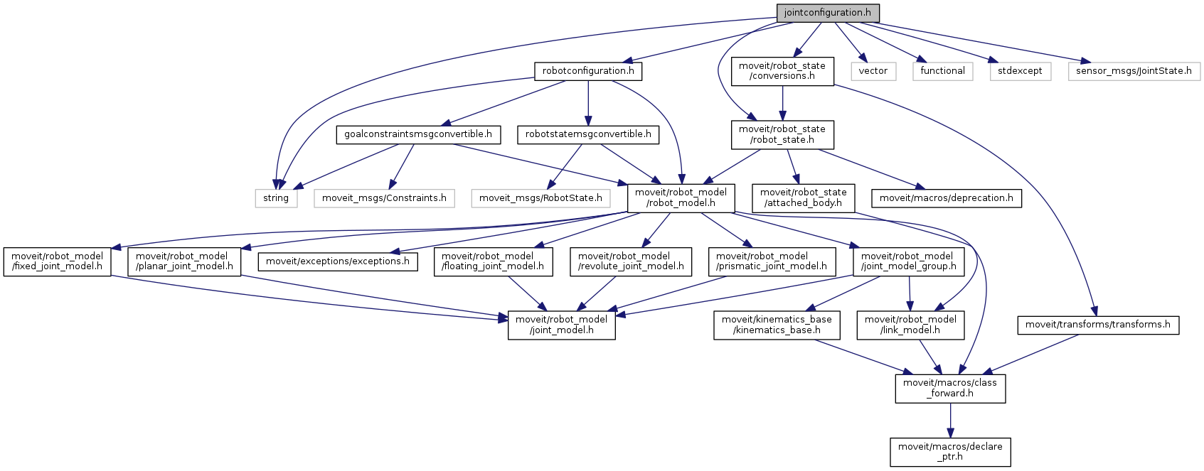 #include <string>#include <vector>#include <functional>#include <stdexcept>#include <sensor_msgs/JointState.h>#include <moveit/robot_state/robot_state.h>#include <moveit/robot_state/conversions.h>#include "robotconfiguration.h"