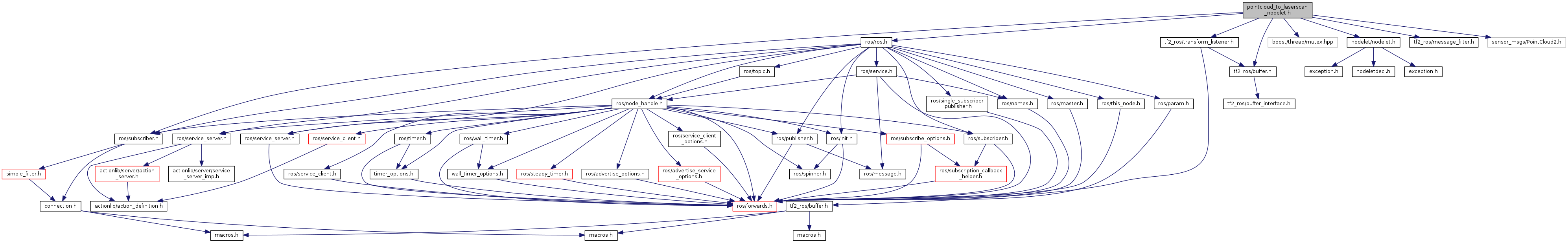 #include "ros/ros.h"#include "boost/thread/mutex.hpp"#include "nodelet/nodelet.h"#include "tf2_ros/buffer.h"#include "tf2_ros/transform_listener.h"#include "tf2_ros/message_filter.h"#include "message_filters/subscriber.h"#include "sensor_msgs/PointCloud2.h"