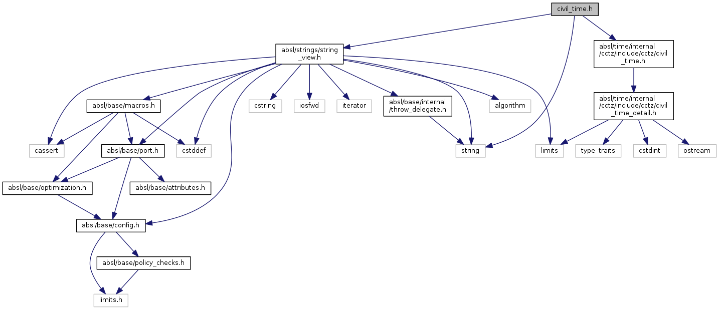 Include dependency graph for civil_time.h: