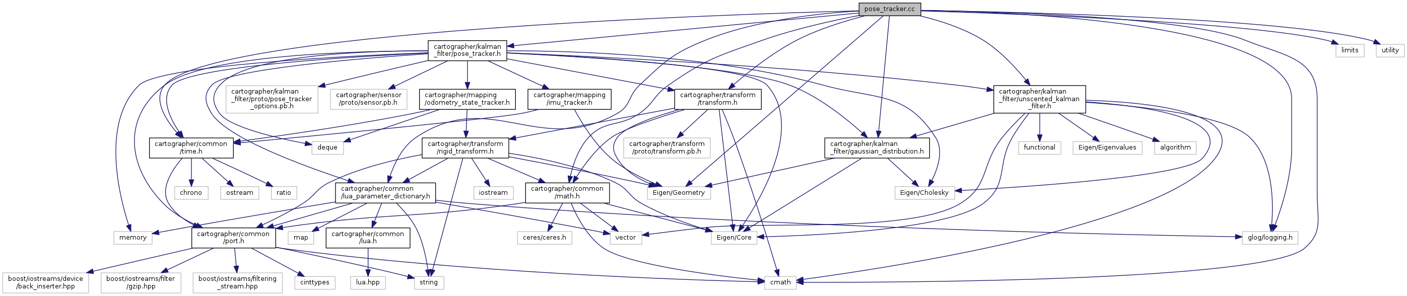 #include "cartographer/kalman_filter/pose_tracker.h"#include <cmath>#include <limits>#include <utility>#include "Eigen/Geometry"#include "cartographer/common/lua_parameter_dictionary.h"#include "cartographer/common/math.h"#include "cartographer/common/time.h"#include "cartographer/kalman_filter/gaussian_distribution.h"#include "cartographer/kalman_filter/unscented_kalman_filter.h"#include "cartographer/transform/transform.h"#include "glog/logging.h"Go to the source code of this file.