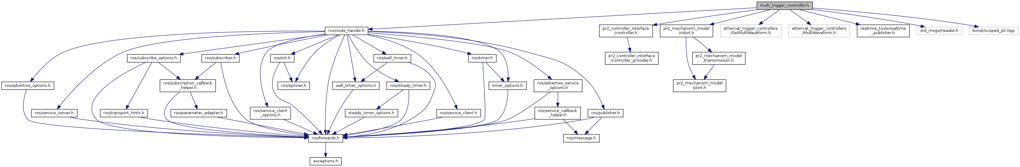 #include <ros/node_handle.h>#include <pr2_controller_interface/controller.h>#include <pr2_mechanism_model/robot.h>#include <ethercat_trigger_controllers/SetMultiWaveform.h>#include <ethercat_trigger_controllers/MultiWaveform.h>#include <realtime_tools/realtime_publisher.h>#include <std_msgs/Header.h>#include <boost/scoped_ptr.hpp>