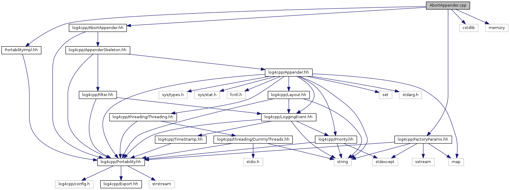 Include dependency graph for AbortAppender.cpp:
