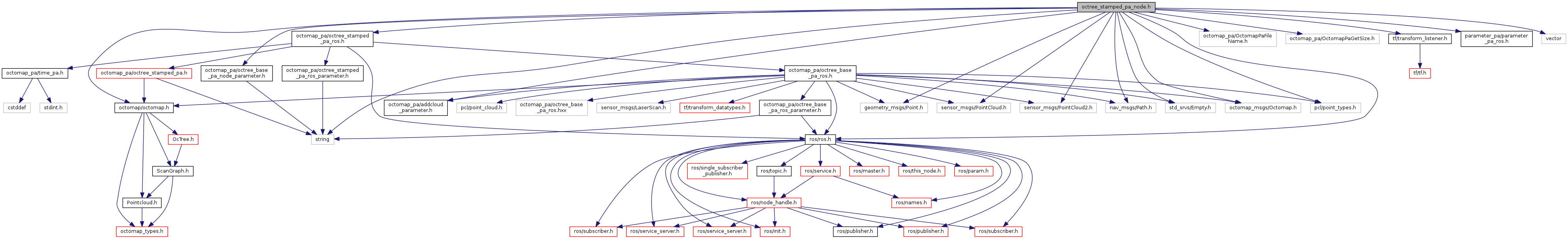 #include "octomap_pa/octree_stamped_pa_ros.h"#include "octomap_pa/octree_base_pa_node_parameter.h"#include "octomap_pa/addcloud_parameter.h"#include "octomap_pa/OctomapPaFileName.h"#include "octomap_pa/OctomapPaGetSize.h"#include <ros/ros.h>#include <geometry_msgs/Point.h>#include <sensor_msgs/PointCloud.h>#include <sensor_msgs/PointCloud2.h>#include <nav_msgs/Path.h>#include <std_srvs/Empty.h>#include <tf/transform_listener.h>#include <octomap_msgs/Octomap.h>#include <parameter_pa/parameter_pa_ros.h>#include <pcl/point_types.h>#include <octomap/octomap.h>#include <string>#include <vector>