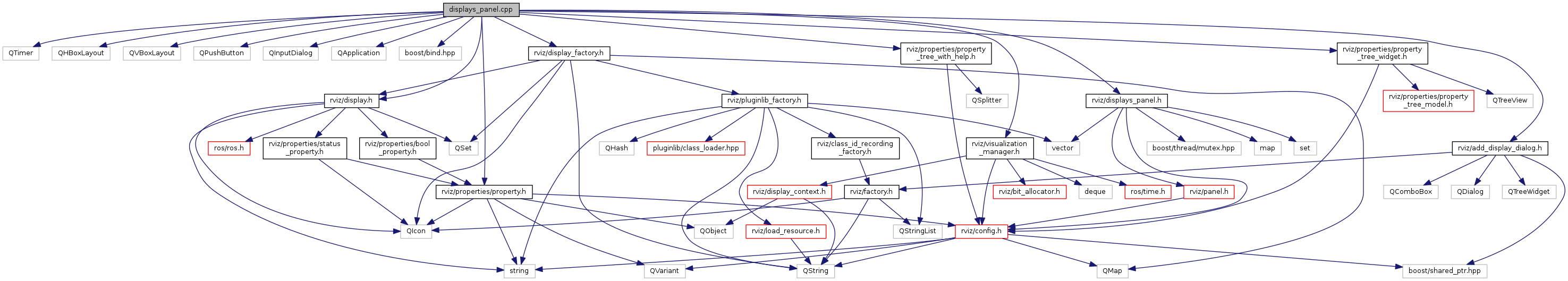 #include <QTimer>#include <QHBoxLayout>#include <QVBoxLayout>#include <QPushButton>#include <QInputDialog>#include <QApplication>#include <boost/bind.hpp>#include "rviz/display_factory.h"#include "rviz/display.h"#include "rviz/add_display_dialog.h"#include "rviz/properties/property.h"#include "rviz/properties/property_tree_widget.h"#include "rviz/properties/property_tree_with_help.h"#include "rviz/visualization_manager.h"#include "rviz/displays_panel.h"