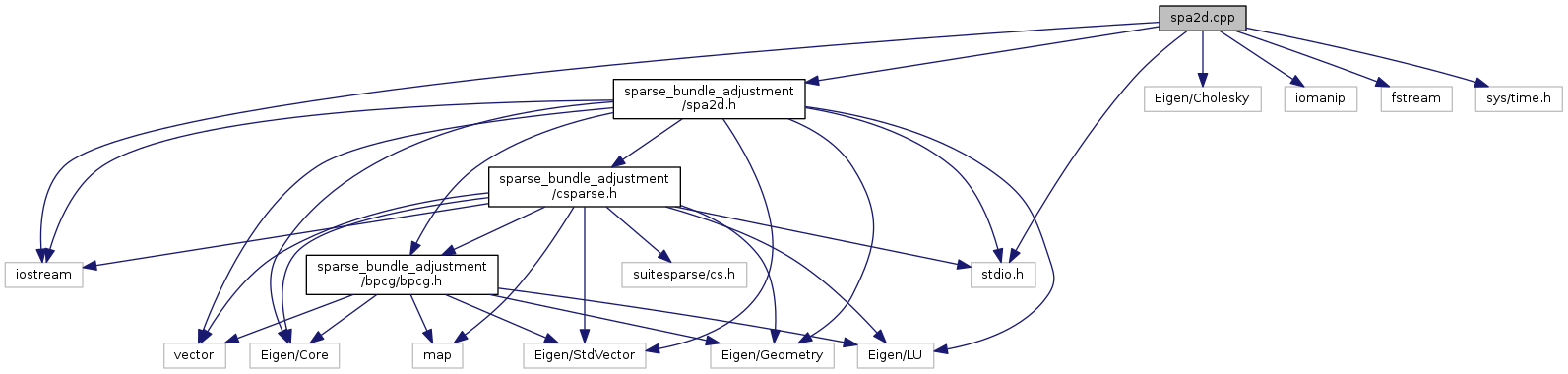 #include <stdio.h>#include "sparse_bundle_adjustment/spa2d.h"#include <Eigen/Cholesky>#include <iostream>#include <iomanip>#include <fstream>#include <sys/time.h>