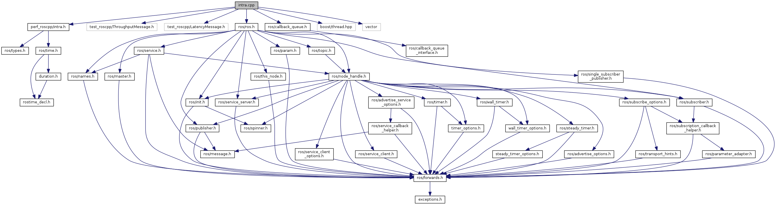 #include "perf_roscpp/intra.h"#include "test_roscpp/ThroughputMessage.h"#include "test_roscpp/LatencyMessage.h"#include <ros/ros.h>#include <ros/callback_queue.h>#include <boost/thread.hpp>#include <vector>