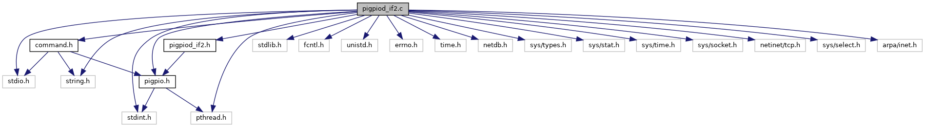 #include <stdio.h>#include <stdlib.h>#include <stdint.h>#include <string.h>#include <fcntl.h>#include <unistd.h>#include <errno.h>#include <time.h>#include <netdb.h>#include <pthread.h>#include <sys/types.h>#include <sys/stat.h>#include <sys/time.h>#include <sys/socket.h>#include <netinet/tcp.h>#include <sys/select.h>#include <arpa/inet.h>#include "pigpio.h"#include "command.h"#include "pigpiod_if2.h"