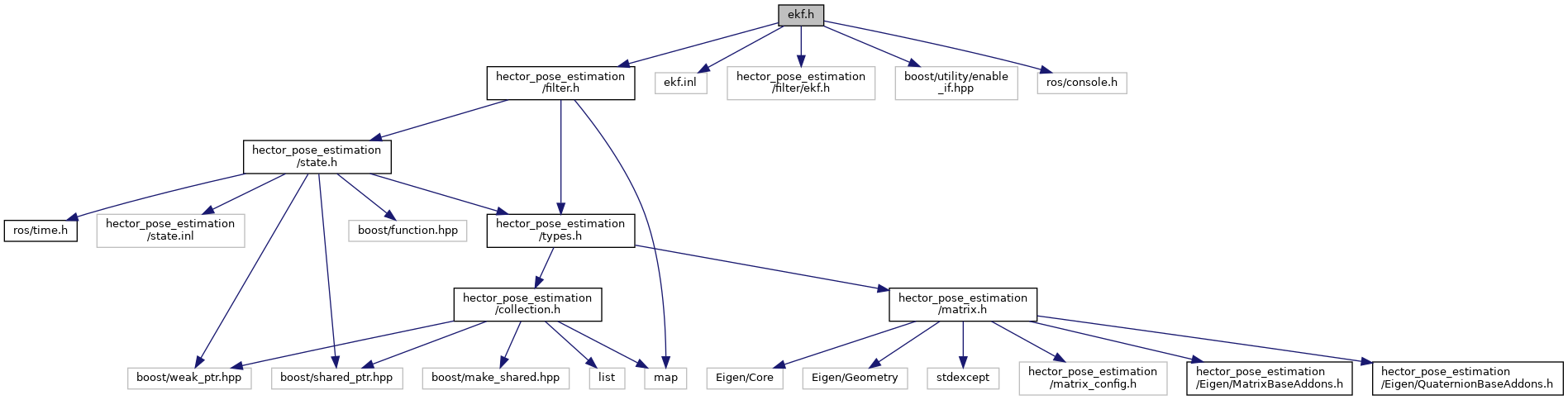 Include dependency graph for ekf.h: