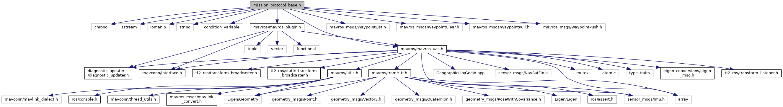 #include <chrono>#include <sstream>#include <iomanip>#include <string>#include <condition_variable>#include <mavros/mavros_plugin.h>#include <mavros/mavros_uas.h>#include <mavros_msgs/WaypointList.h>#include <mavros_msgs/WaypointClear.h>#include <mavros_msgs/WaypointPull.h>#include <mavros_msgs/WaypointPush.h>