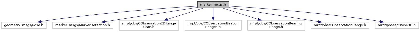 #include <geometry_msgs/Pose.h>#include <marker_msgs/MarkerDetection.h>#include <mrpt/obs/CObservation2DRangeScan.h>#include <mrpt/obs/CObservationBeaconRanges.h>#include <mrpt/obs/CObservationBearingRange.h>#include <mrpt/obs/CObservationRange.h>#include <mrpt/poses/CPose3D.h>