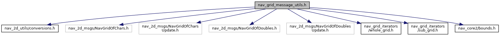 | Utilities for converting NavGrid objects to NavGridOfX messages and updates. More...