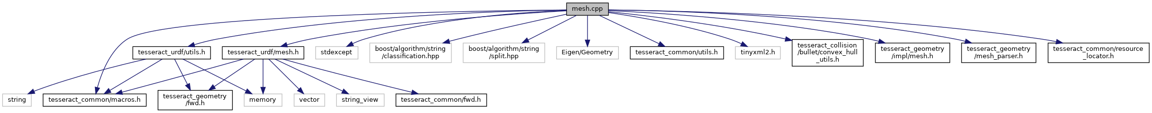 #include <tesseract_common/macros.h>#include <stdexcept>#include <boost/algorithm/string/classification.hpp>#include <boost/algorithm/string/split.hpp>#include <Eigen/Geometry>#include <tesseract_common/utils.h>#include <tinyxml2.h>#include <tesseract_collision/bullet/convex_hull_utils.h>#include <tesseract_geometry/impl/mesh.h>#include <tesseract_geometry/mesh_parser.h>#include <tesseract_urdf/mesh.h>#include <tesseract_common/resource_locator.h>#include <tesseract_urdf/utils.h>