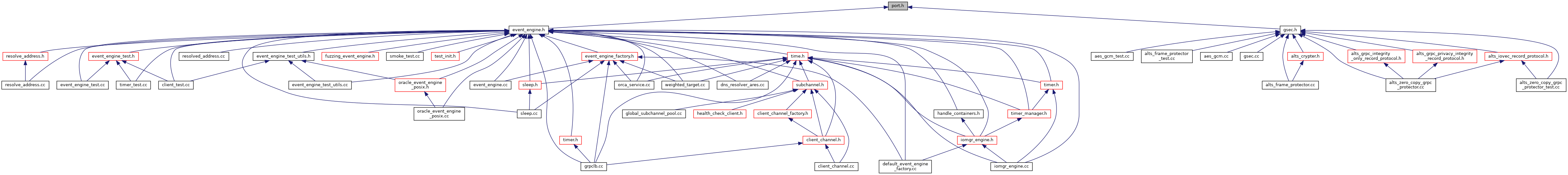 Include dependency graph for include/grpc/event_engine/port.h: