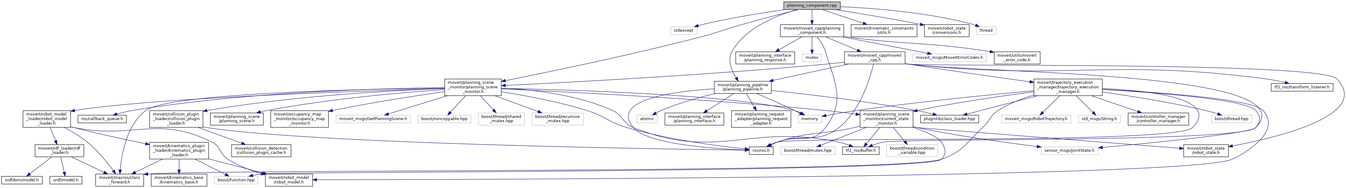 #include <stdexcept>#include <moveit/moveit_cpp/planning_component.h>#include <moveit/kinematic_constraints/utils.h>#include <moveit/planning_pipeline/planning_pipeline.h>#include <moveit/planning_scene_monitor/planning_scene_monitor.h>#include <moveit/robot_state/conversions.h>#include <thread>
