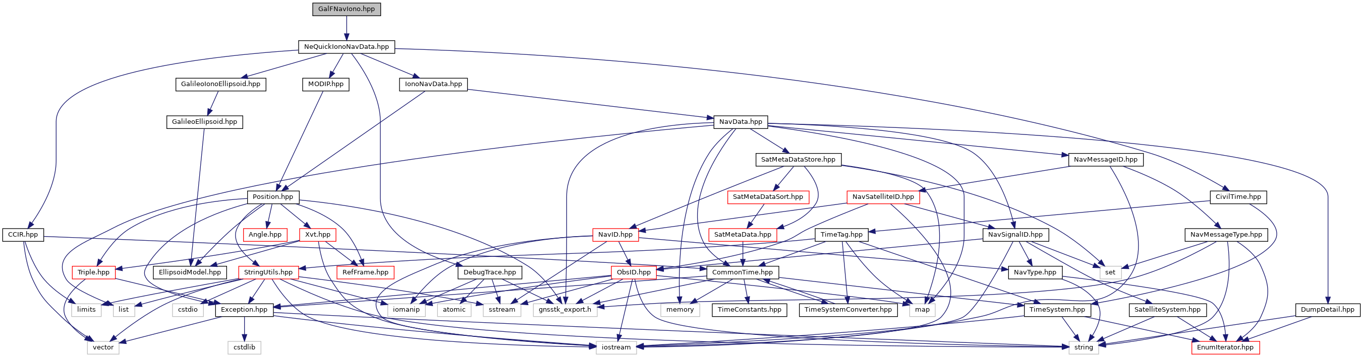 Include dependency graph for GalFNavIono.hpp: