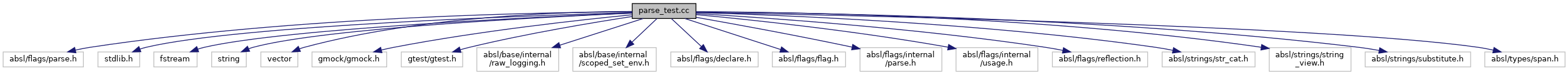 Include dependency graph for abseil-cpp/absl/flags/parse_test.cc: