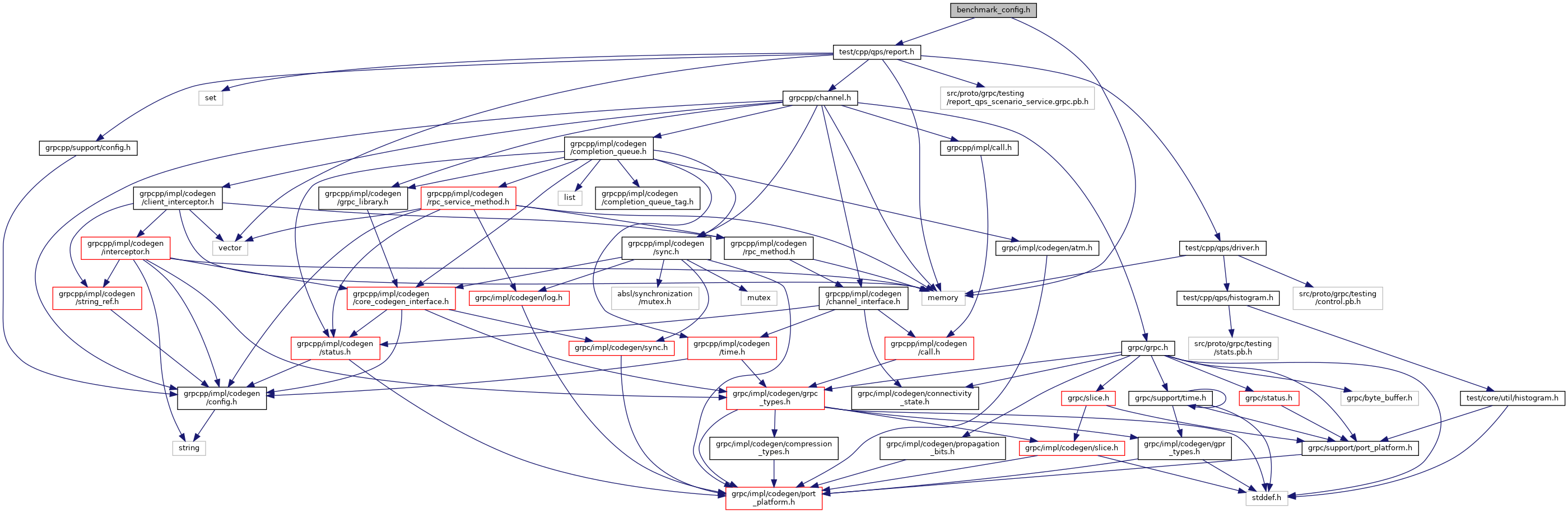 Include dependency graph for benchmark_config.h: