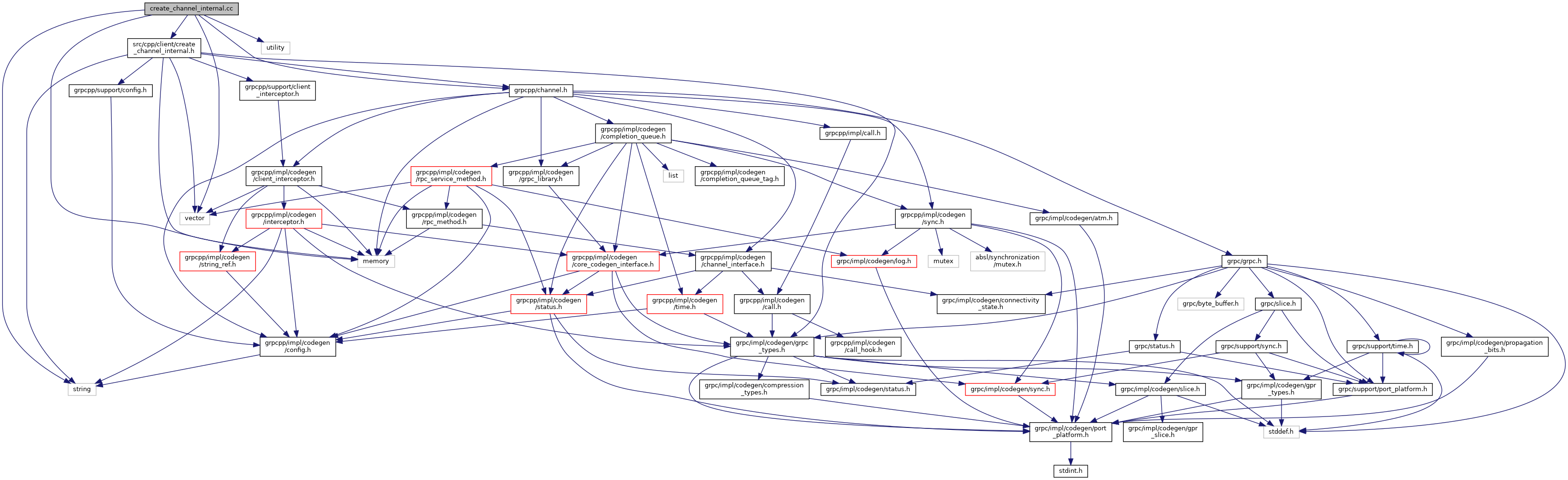 std::shared_ptr< Channel > | grpc::CreateChannelInternal (const std::string &host, grpc_channel *c_channel, std::vector< std::unique_ptr< grpc::experimental::ClientInterceptorFactoryInterface >> interceptor_creators) |