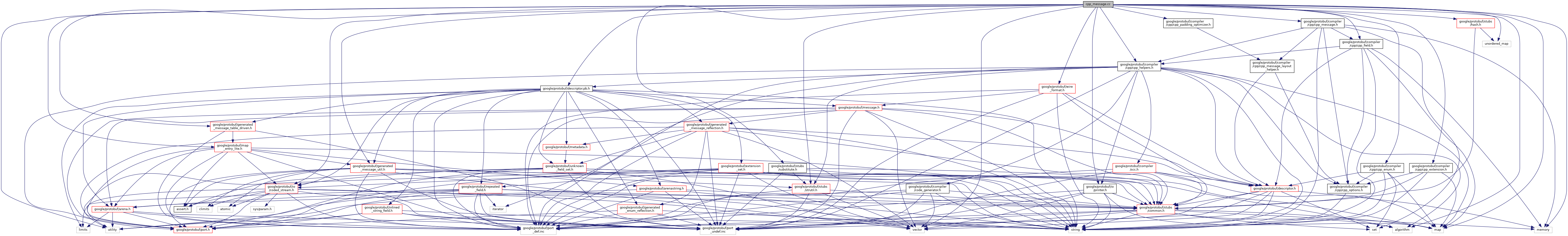 #include <google/protobuf/compiler/cpp/cpp_message.h>#include <algorithm>#include <map>#include <memory>#include <unordered_map>#include <utility>#include <vector>#include <google/protobuf/compiler/cpp/cpp_enum.h>#include <google/protobuf/compiler/cpp/cpp_extension.h>#include <google/protobuf/compiler/cpp/cpp_field.h>#include <google/protobuf/compiler/cpp/cpp_helpers.h>#include <google/protobuf/compiler/cpp/cpp_padding_optimizer.h>#include <google/protobuf/descriptor.pb.h>#include <google/protobuf/io/coded_stream.h>#include <google/protobuf/io/printer.h>#include <google/protobuf/generated_message_table_driven.h>#include <google/protobuf/generated_message_util.h>#include <google/protobuf/map_entry_lite.h>#include <google/protobuf/wire_format.h>#include <google/protobuf/stubs/strutil.h>#include <google/protobuf/stubs/substitute.h>#include <google/protobuf/stubs/hash.h>