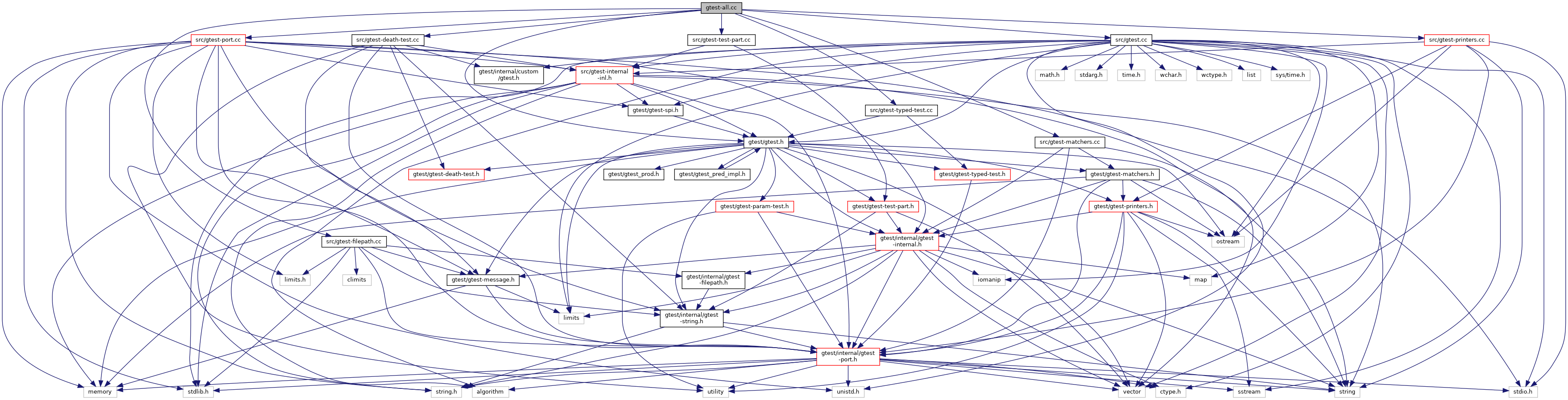 Include dependency graph for gtest-all.cc: