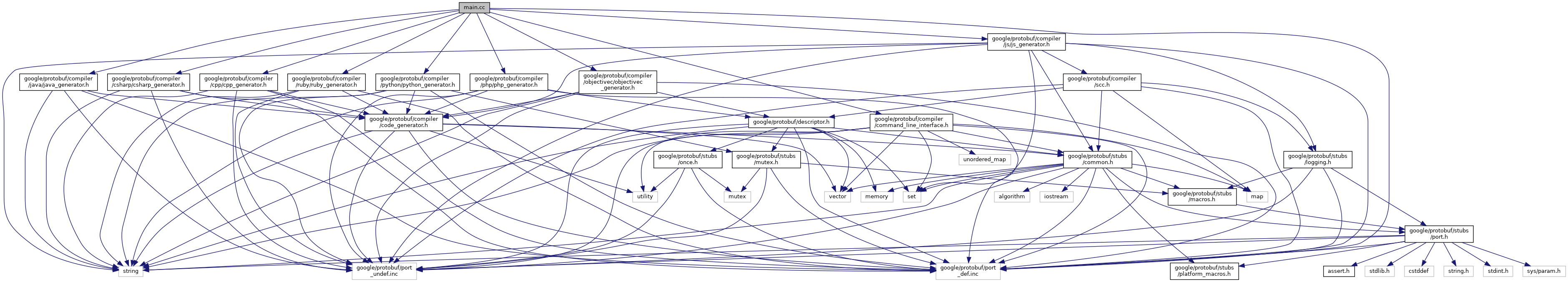 #include <google/protobuf/compiler/cpp/cpp_generator.h>#include <google/protobuf/compiler/java/java_generator.h>#include <google/protobuf/compiler/command_line_interface.h>#include <google/protobuf/compiler/python/python_generator.h>#include <google/protobuf/compiler/csharp/csharp_generator.h>#include <google/protobuf/compiler/js/js_generator.h>#include <google/protobuf/compiler/objectivec/objectivec_generator.h>#include <google/protobuf/compiler/php/php_generator.h>#include <google/protobuf/compiler/ruby/ruby_generator.h>#include <google/protobuf/port_def.inc>
