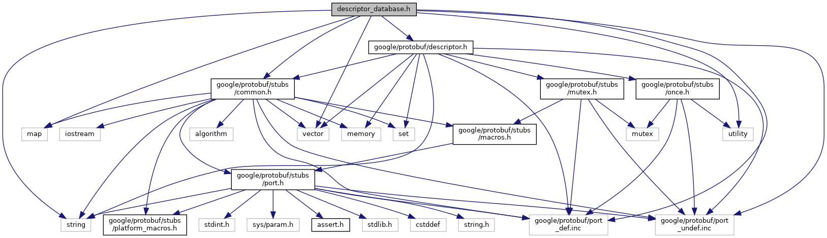 Include dependency graph for src/google/protobuf/descriptor_database.h: