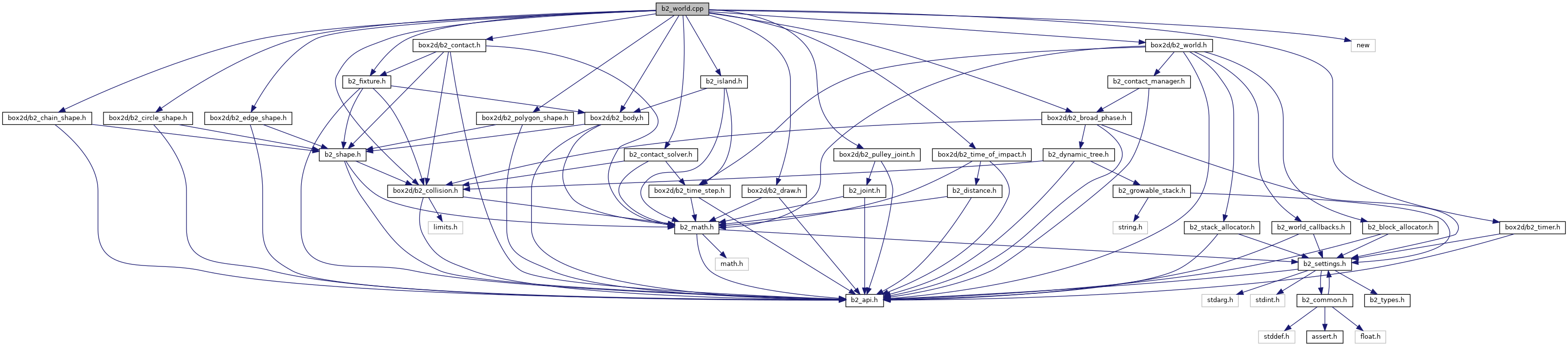 #include "b2_contact_solver.h"#include "b2_island.h"#include "box2d/b2_body.h"#include "box2d/b2_broad_phase.h"#include "box2d/b2_chain_shape.h"#include "box2d/b2_circle_shape.h"#include "box2d/b2_collision.h"#include "box2d/b2_contact.h"#include "box2d/b2_draw.h"#include "box2d/b2_edge_shape.h"#include "box2d/b2_fixture.h"#include "box2d/b2_polygon_shape.h"#include "box2d/b2_pulley_joint.h"#include "box2d/b2_time_of_impact.h"#include "box2d/b2_timer.h"#include "box2d/b2_world.h"#include <new>