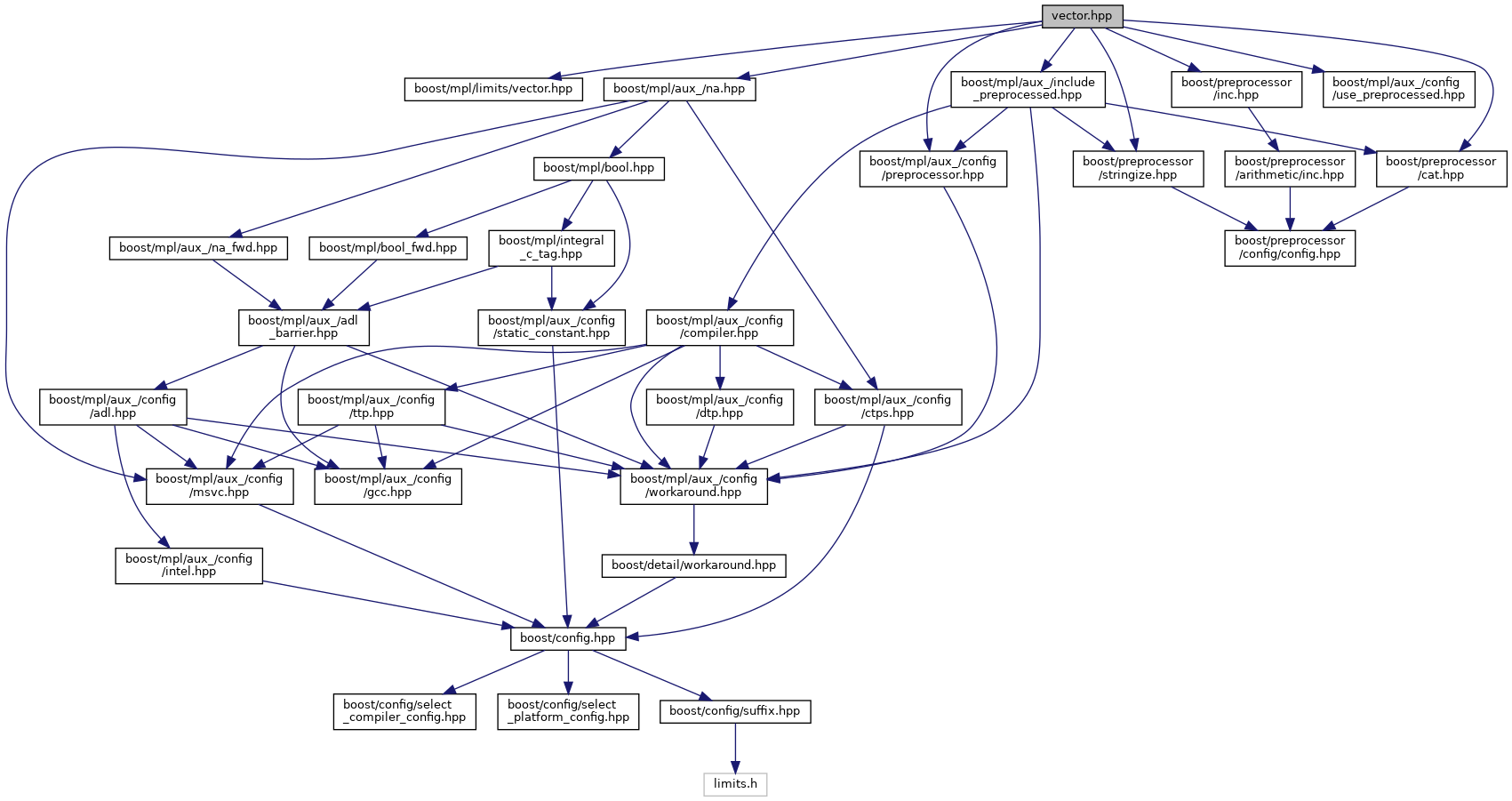 #include <boost/mpl/limits/vector.hpp>#include <boost/mpl/aux_/na.hpp>#include <boost/mpl/aux_/config/preprocessor.hpp>#include <boost/preprocessor/inc.hpp>#include <boost/preprocessor/cat.hpp>#include <boost/preprocessor/stringize.hpp>#include <boost/mpl/aux_/config/use_preprocessed.hpp>#include <boost/mpl/aux_/include_preprocessed.hpp>