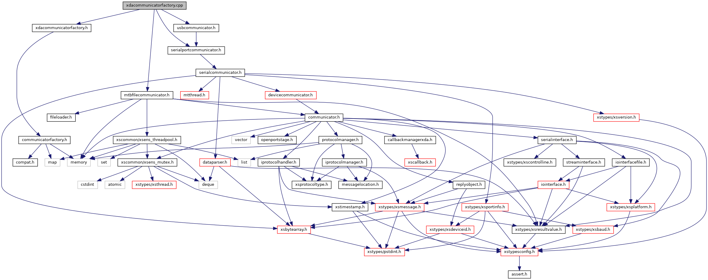 Include dependency graph for xdacommunicatorfactory.cpp: