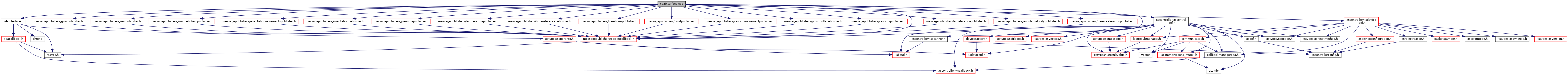 #include "xdainterface.h"#include <xscontroller/xsscanner.h>#include <xscontroller/xscontrol_def.h>#include <xscontroller/xsdevice_def.h>#include "messagepublishers/packetcallback.h"#include "messagepublishers/accelerationpublisher.h"#include "messagepublishers/angularvelocitypublisher.h"#include "messagepublishers/freeaccelerationpublisher.h"#include "messagepublishers/gnsspublisher.h"#include "messagepublishers/imupublisher.h"#include "messagepublishers/magneticfieldpublisher.h"#include "messagepublishers/orientationincrementspublisher.h"#include "messagepublishers/orientationpublisher.h"#include "messagepublishers/pressurepublisher.h"#include "messagepublishers/temperaturepublisher.h"#include "messagepublishers/timereferencepublisher.h"#include "messagepublishers/transformpublisher.h"#include "messagepublishers/twistpublisher.h"#include "messagepublishers/velocityincrementpublisher.h"#include "messagepublishers/positionllapublisher.h"#include "messagepublishers/velocitypublisher.h"
