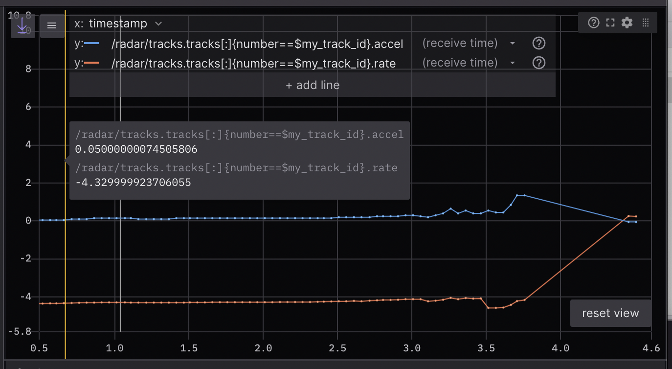When playing back local or remote data files, this panel will preload the data belonging to the specified topic message paths for the whole playback timeline. Current playback time is indicated by a vertical gray bar.