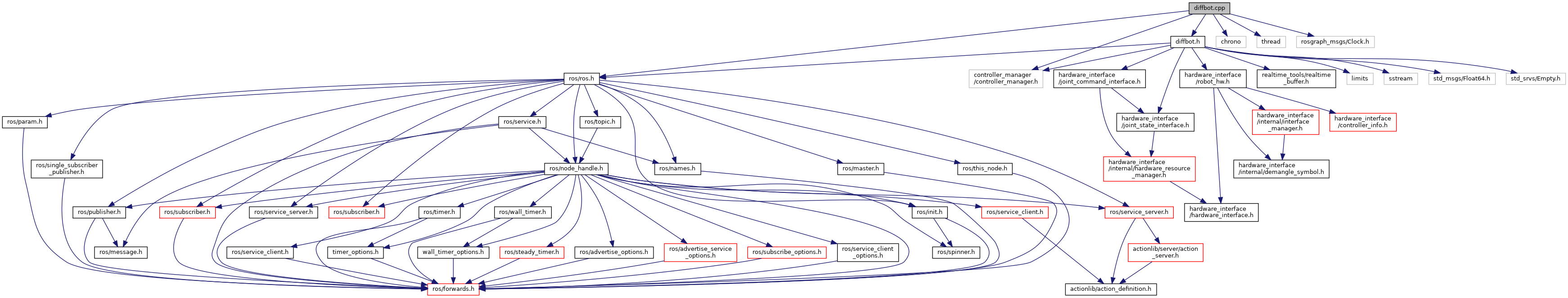 #include "diffbot.h"#include <chrono>#include <thread>#include <controller_manager/controller_manager.h>#include <ros/ros.h>#include <rosgraph_msgs/Clock.h>