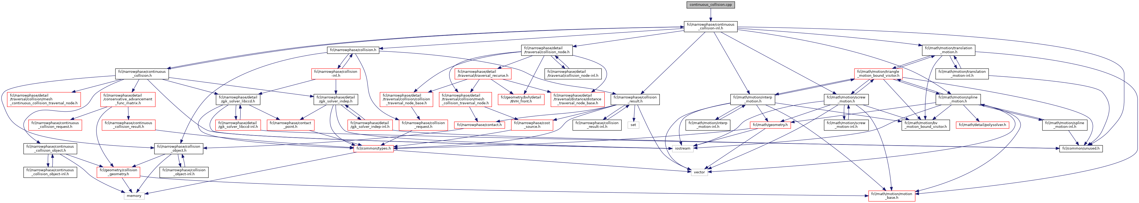 template double | fcl::continuousCollide (const CollisionGeometry< double > *o1, const MotionBase< double > *motion1, const CollisionGeometry< double > *o2, const MotionBase< double > *motion2, const ContinuousCollisionRequest< double > &request, ContinuousCollisionResult< double > &result) |