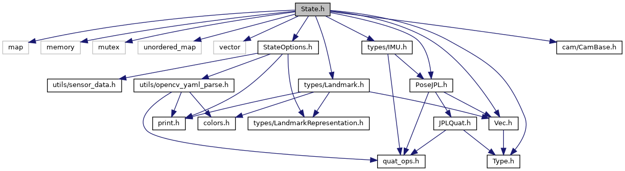 #include <map>#include <memory>#include <mutex>#include <unordered_map>#include <vector>#include "StateOptions.h"#include "cam/CamBase.h"#include "types/IMU.h"#include "types/Landmark.h"#include "types/PoseJPL.h"#include "types/Type.h"#include "types/Vec.h"