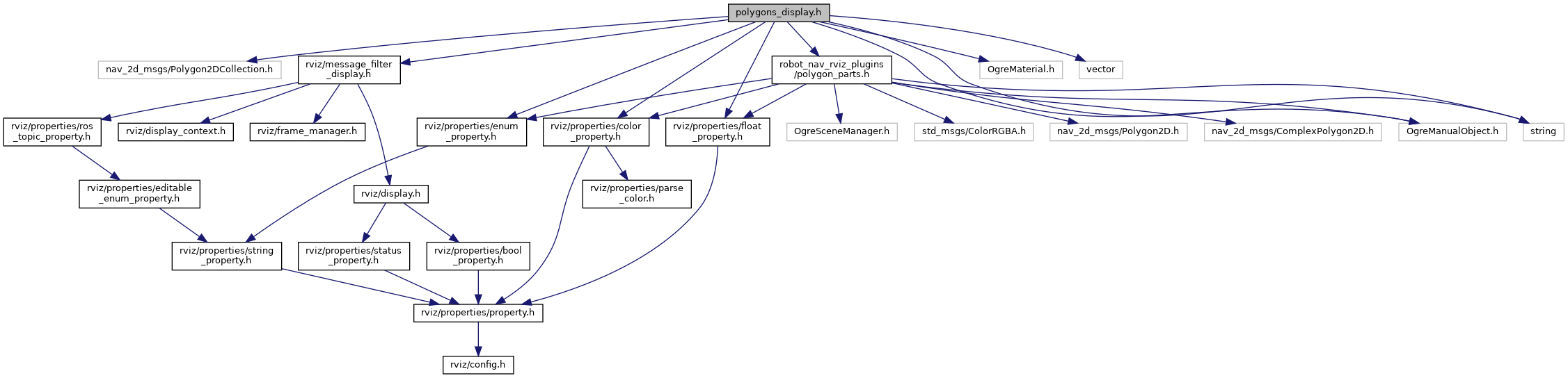 #include <nav_2d_msgs/Polygon2DCollection.h>#include <rviz/message_filter_display.h>#include <rviz/properties/enum_property.h>#include <rviz/properties/color_property.h>#include <rviz/properties/float_property.h>#include <robot_nav_rviz_plugins/polygon_parts.h>#include <OgreManualObject.h>#include <OgreMaterial.h>#include <string>#include <vector>