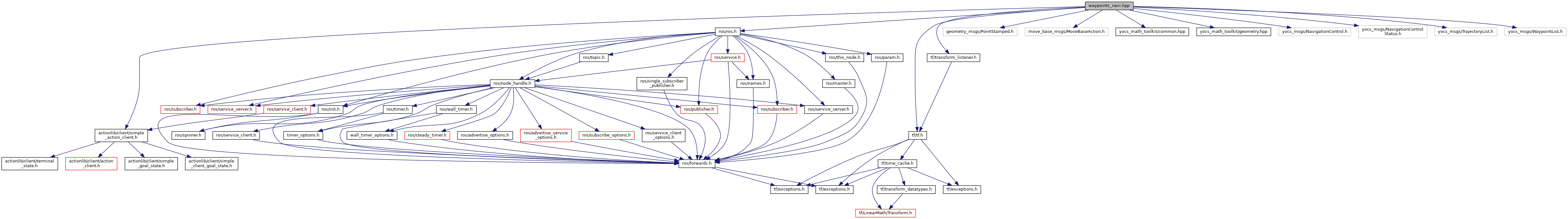 #include <tf/tf.h>#include <tf/transform_listener.h>#include <ros/ros.h>#include <geometry_msgs/PointStamped.h>#include <move_base_msgs/MoveBaseAction.h>#include <actionlib/client/simple_action_client.h>#include <yocs_math_toolkit/common.hpp>#include <yocs_math_toolkit/geometry.hpp>#include <yocs_msgs/NavigationControl.h>#include <yocs_msgs/NavigationControlStatus.h>#include <yocs_msgs/TrajectoryList.h>#include <yocs_msgs/WaypointList.h>